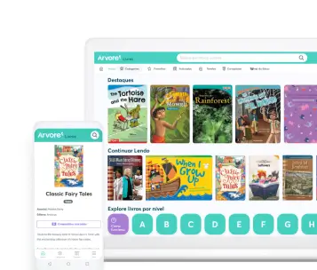 Pensando nisso, a Árvore Inglês oferece um acervo de mais de 3 mil títulos clássicos, contemporâneos e textos informativos sobre temas variados. Composto por editoras renomadas como E-future Classic Readers, Teacher Created Materials, Time for Kids e Graphic Universe.